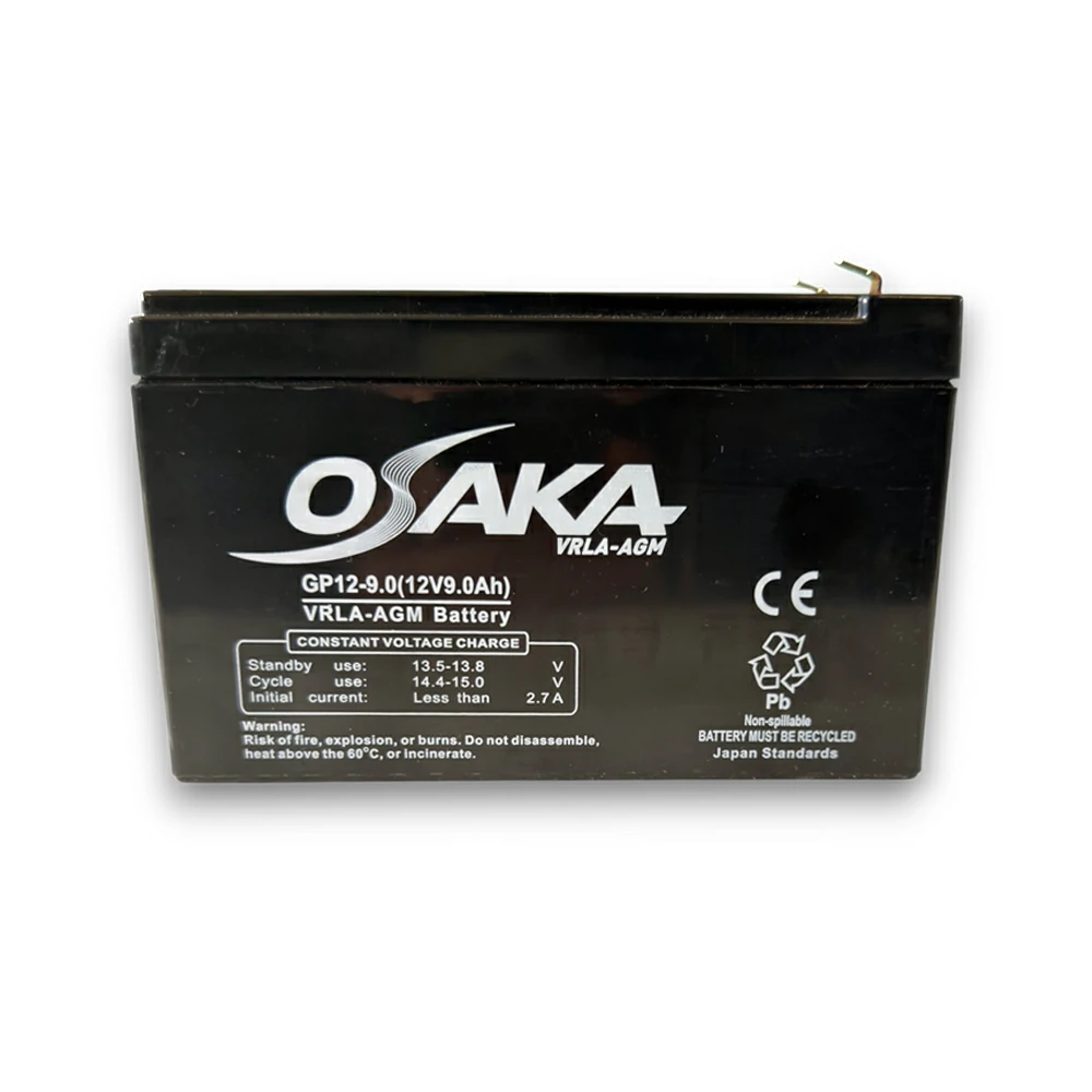 Η Osaka GP12-9 | 12V-9Ah | F1 είναι μια αξιόπιστη μπαταρία κλειστού τύπου VRLA/AGM (Valve Regulated Lead Acid – Absorbent Glass Mat), ειδικά σχεδιασμένη για εφαρμογές γενικής χρήσης, συστήματα ασφαλείας και UPS μικρής ισχύος. Με ονομαστική τάση 12V και χωρητικότητα 9Ah, προσφέρει σταθερή απόδοση, ασφάλεια και μεγάλη διάρκεια ζωής, καθιστώντας την ιδανική λύση για συσκευές που απαιτούν αδιάλειπτη παροχή ενέργειας.