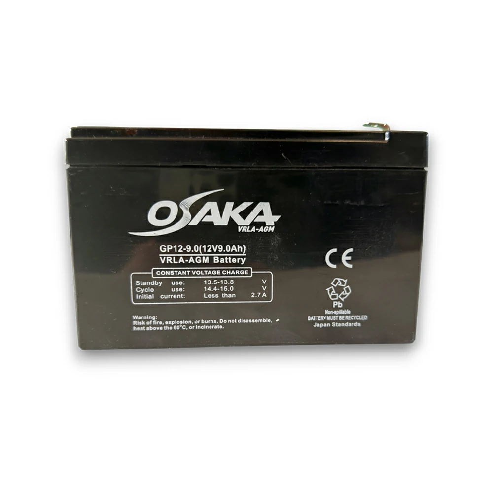 Η Osaka GP12-9 | 12V-9Ah | F2 είναι μια αξιόπιστη μπαταρία κλειστού τύπου VRLA/AGM (Valve Regulated Lead Acid – Absorbent Glass Mat), ειδικά σχεδιασμένη για εφαρμογές γενικής χρήσης, συστήματα ασφαλείας και UPS μικρής ισχύος. Με ονομαστική τάση 12V και χωρητικότητα 9Ah, προσφέρει σταθερή απόδοση, ασφάλεια και μεγάλη διάρκεια ζωής, καθιστώντας την ιδανική λύση για συσκευές που απαιτούν αδιάλειπτη παροχή ενέργειας.