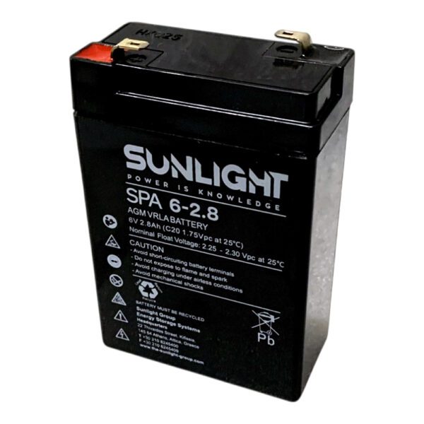 Η Sunlight SPA 6-2.8 | 6V-2.8Ah έχει αναπτυχθεί ως μπαταρία γενικής χρήσης, σχεδιασμένη να παρέχει αξιόπιστη απόδοση σε ένα ευρύ πεδίο εφαρμογών.
